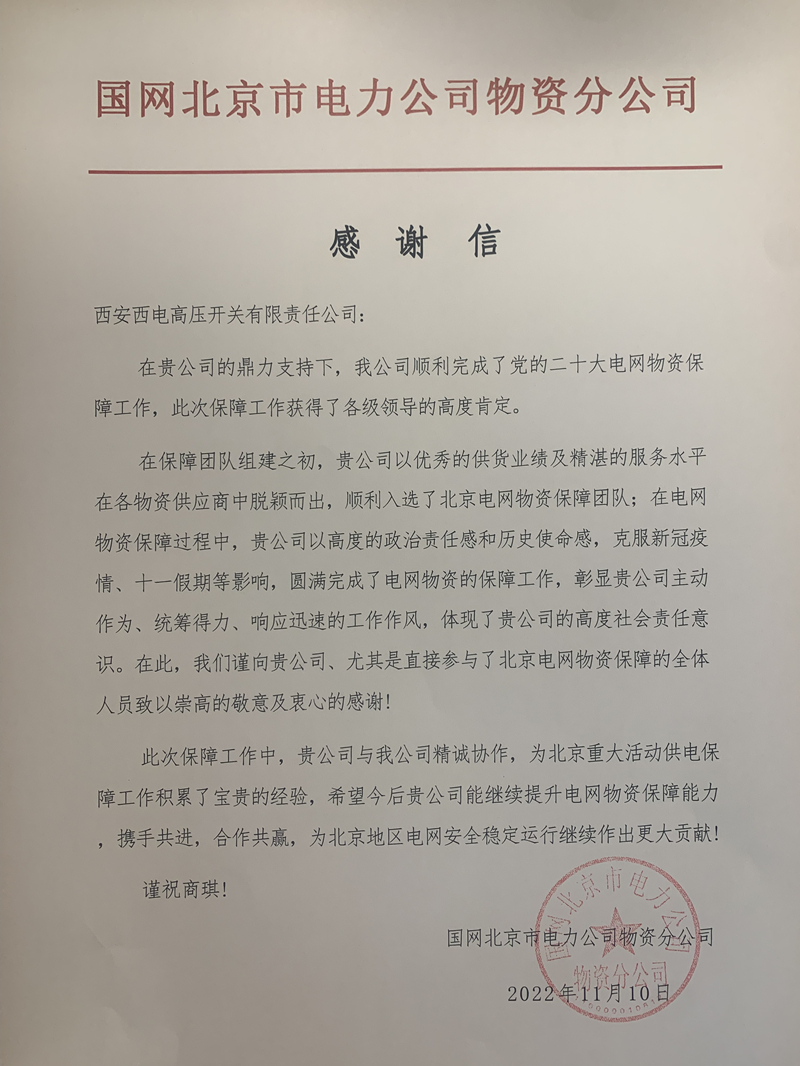 为全面保障二十大期间的电力安全,做好应急服务和保电值守工作,PA视讯官网未雨绸缪,坚守使命,精心策划,全面落实,制定二十大保电应急保障方案,成立产品服务应急安全保障小组,组织技术人员整理备品备件清单,落实物料库存情况;强化电力安全保障能力,安排华北片区王鹏亮、服务人员杨群波同志于10月1日前抵达北京,开展电网物资保障工作,严格落实应急值班24小时管理制度,确保遇到突发状况处置高效,供电安全万无一失。保电期间现场人员严精细实、专业专注的出色表现和优质服务也获得了用户的高度认可。