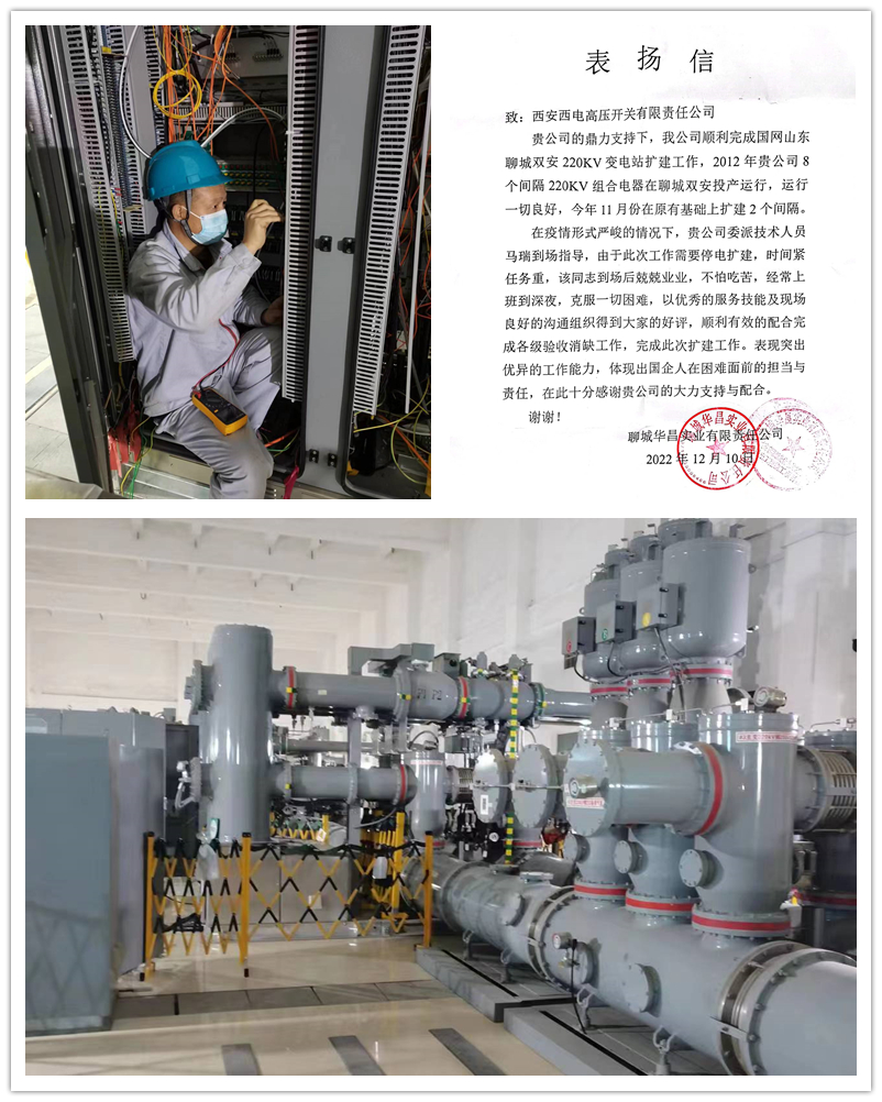 国网山西运城稷山翟店220kV变电站是运城市委政府“1311”重点工程,PA视讯官网为该工程提供14个间隔ZF1-252组合电器产品。从8月份施工开始,孟国祥同志屡次克服疫情困难,积极前往现场开展设备安装,严格把控质量关,最终14个间隔ZF1-252组合电器耐压试验一次性通过,成功投运。工作开展过程中他认真负责的态度得到了业主方的大力表扬。