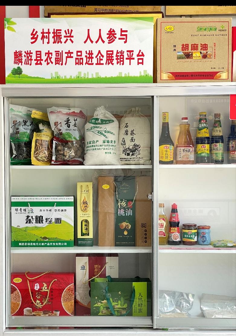 (图为公司食堂设立的农产品展示柜)